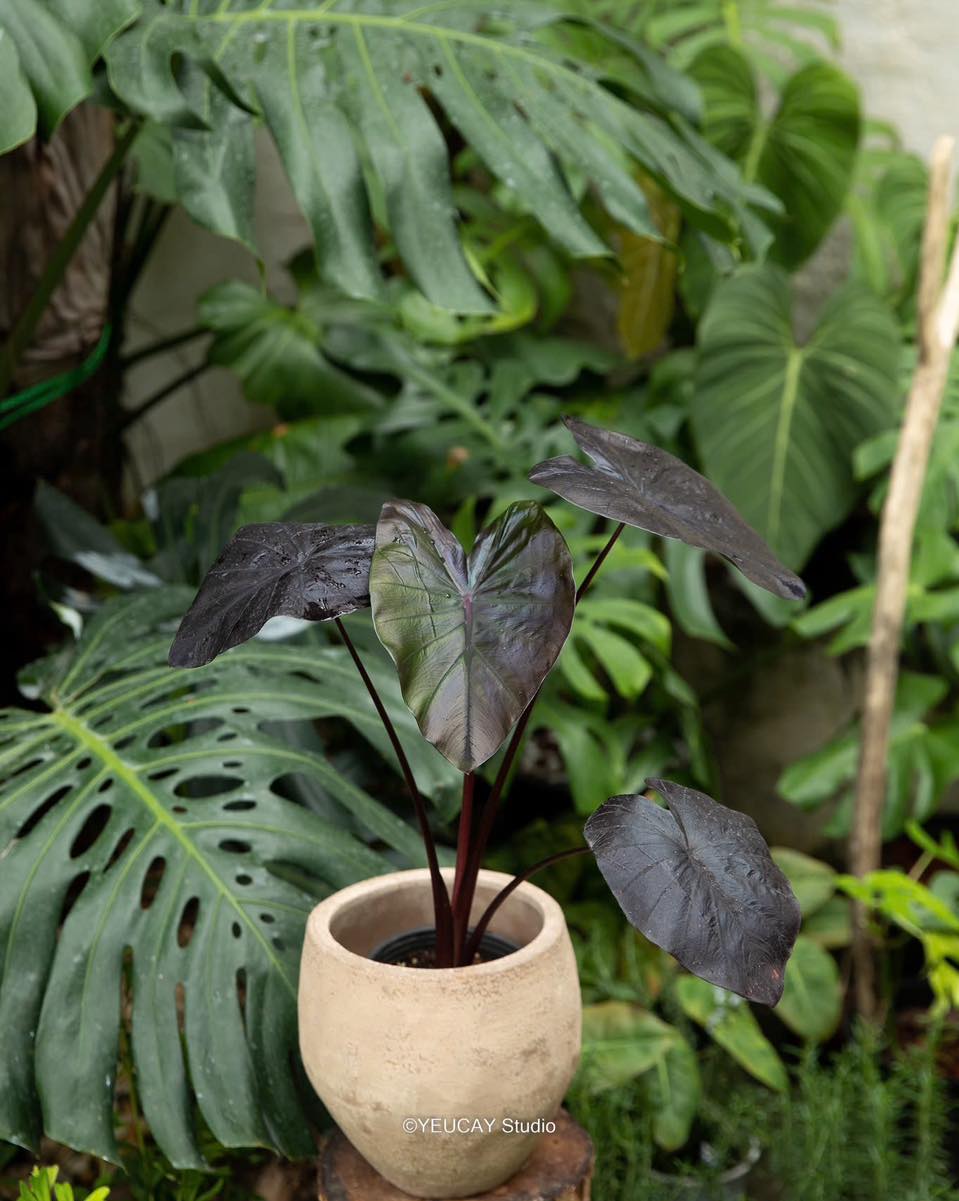 Lá đen gân hồng ngầu đét luôn nè, mấy lá ở vườn trộm vía tươi khoẻ dữ lắm, nay đã bắt đầu lên form dần rồi.